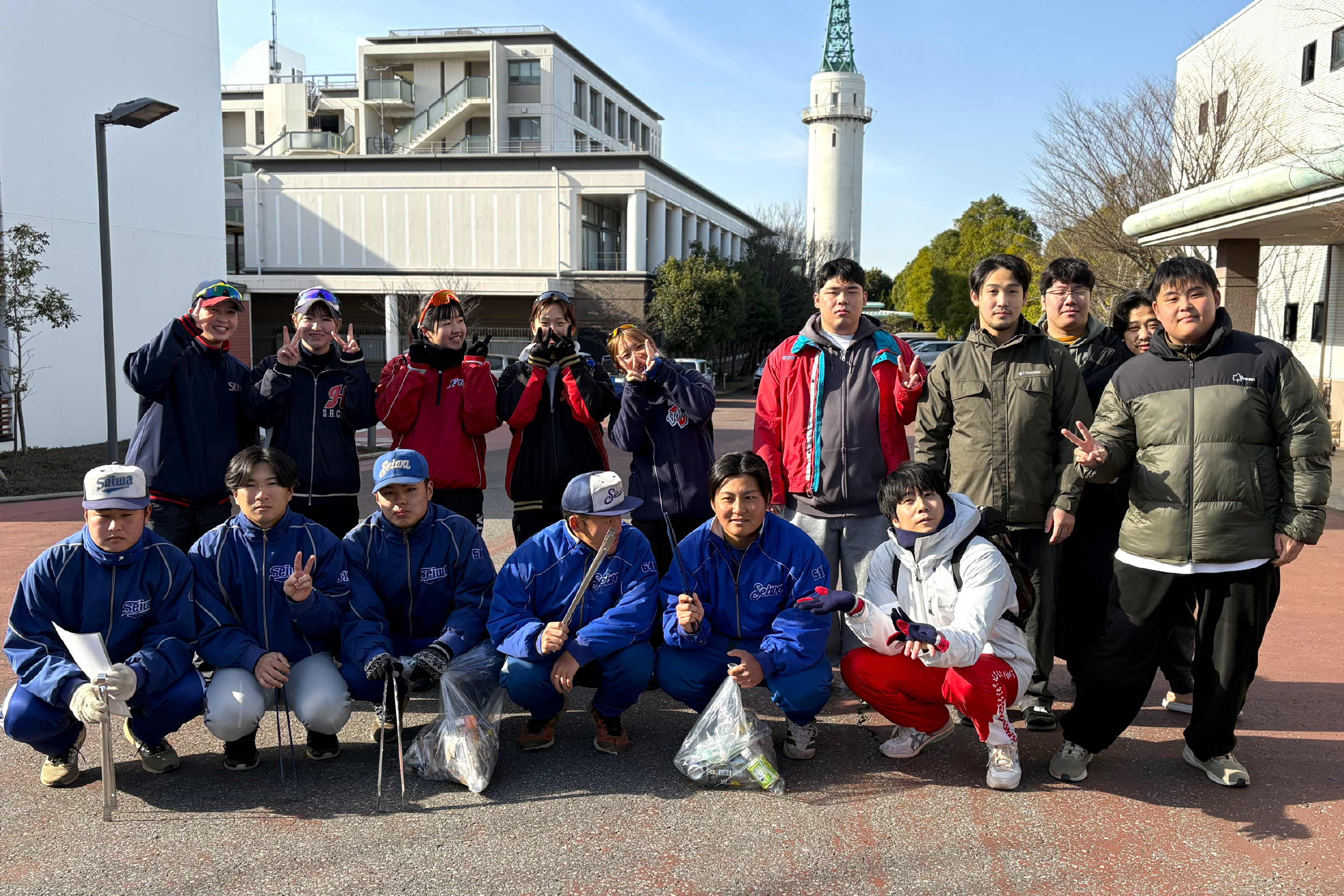 青空の下、朝練習/稽古後に爽快な気分と笑顔で活動していたのが印象的でした。