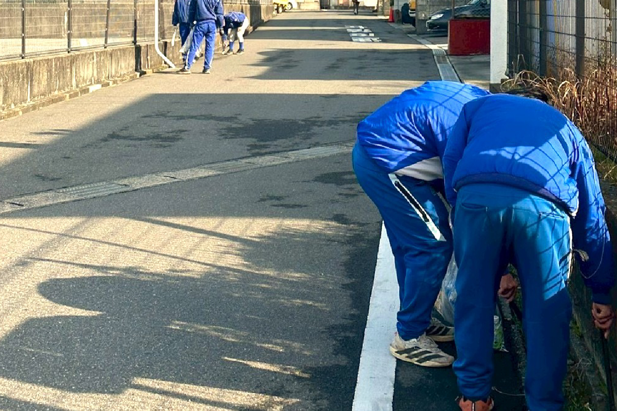 1月27日(火)の早朝に、強化指定部(剣道・硬式野球・柔道・ソフトボール・陸上競技)による奉仕活動(清掃)が行われました。